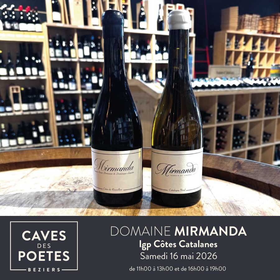 Cuvées disponibles aux Caves : Mirmanda (blanc) ; Mirmanda (rouge).